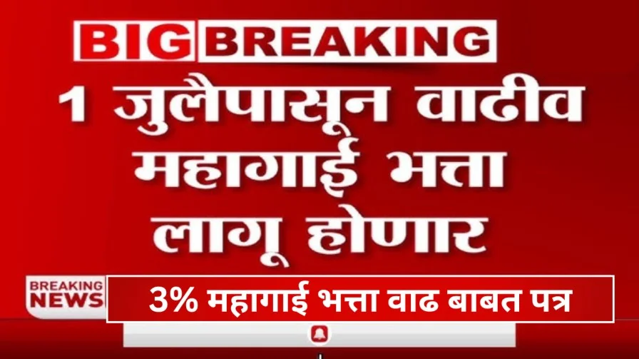 1 जुलैपासून वाढीव महागाई भत्ता लागू होणार; 3% महागाई भत्ता वाढ बाबत पत्र